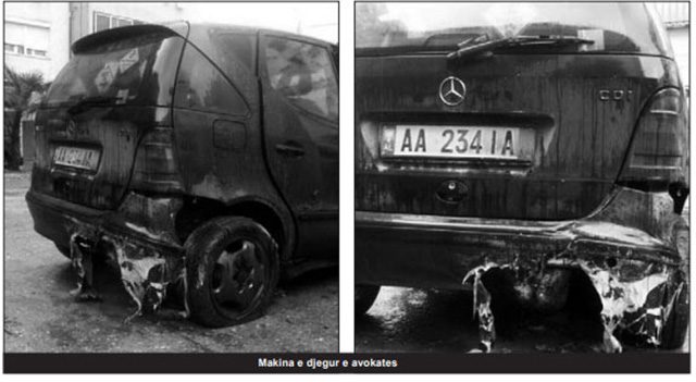 Automjeti tip “Mercedes-Benz A Class”, me targë AA 234 IA, në pronësi të avokates, G. M., ka qenë i parkuar në hapësirën mes pallateve të një blloku banimi në momentin që është konstatuar zjarri. Dëshmitarët, sapo kanë parë flakët kanë lajmëruar menjëherë zjarrfikësit.