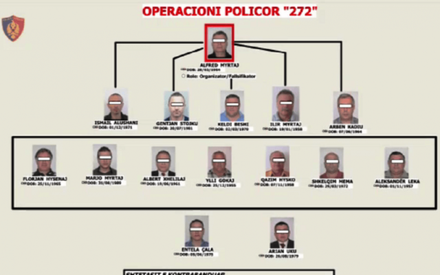 Nisur nga informacionet e mbledhura dhe të administruara është dokumentuar me prova se shtetasit Alfred Myrtaj, Marjo Myrtaj, Albert Xhelilaj, në bashkëpunim me njëri-tjetrin kryenin falsifikime të dokumenteve si letërnjoftime, pasaporta, viza, duke pajisur persona të ndryshëm kundrejt përfitimit monetar dhe material. Nëpërmjet linjave ajrore dhe linjave të tjera të udhëtimit, ky grup transportonte njerëz në shtete të ndryshme, kryesisht: SHBA, Kanada dhe Mbretëri e Bashkuar.