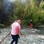 Nga flakët e zjarrit, rrezikohen edhe shtyllat e tensionit të lartë.