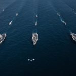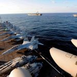 Tri aeroplanmbajtëset më të mëdha amerikane, “USS Ronald Reagan”, “USS Theodore Roosevelt” dhe “USS Nimitz” të shoqëruara me luftanije dhe avionë luftarakë që u prijnë, “çajnë” detin përpara. Tri aeroplanmbajtëset kanë lundruar në distancë të afërt me njëra – tjetrën teksa në bord kanë më shumë se 200 avionë luftarakë.