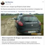 Në Ravena të Italisë dy grupe kriminale shqiptare i kanë nxjerrë armët njëri-tjetrit. Sipas policisë që ka zhvilluar një operacion, janë ndaluar 4 persona, tre prej të cilëve janë shqiptarë. Gjatë kontrolleve janë zbuluar edhe 2.2 ton kanabis shqiptar. Ndërkohë ngjarjen e ka denoncuar në Facebook edhe ish-kryeministri Sali Berisha, i cili e ka shoqëruar edhe me linkun e medieve italine. Sipas mediave lokale kjo është sasia më e madhe e drogë e sekuestruar ndonjëherë në Ravena. Shqiptarët e prangosur i përkasin grupmoshave 21, 27 dhe 53 vjeç. Në pranga është vënë edhe një italian 26-vjeçar.