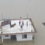 Banorët kanë hipur mbi çatitë e shtëpive në pritje të ndihmës.