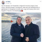 Kreu i Shtetit e ka njoftuar takimin me një postim në Facebook, bashkëshoqëruar me një foto. “Sot në Marsejë, me Presidentin e Rajonit të Provence-Alpes-Cotes d’Azur, Renaud Muselier, eurodeputet, duke folur për bashkëpunimin e gjithanshëm të Shqipërisë me këtë rajon, nga më të bukurit dhe më të begatët e Francës e të Mesdheut”, shkruan Meta.