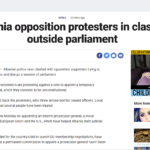 Agjencitë ndërkombëtare të lajmeve kanë pasqyruar gjerësisht dhunën në protestën e opozitës kundër zgjedhjes së Prokurorit të përgjithshëm të përkohshëm. Mediat e huaja shkruajnë se në protestë morën pjesë 3 mijë persona dhe disa prej tyre u lënduan.