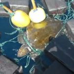 Një prej litarëve ishte lidhur rreth qafës së breshkës dhe me siguri që do ti kushtonte jetën, nëse roja bregdetare amerikane nuk do ta kishte shpëtuar.