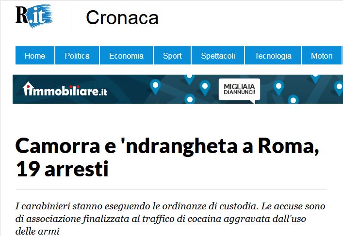 Kanë qëne rreth 200 forca policie kanë ekzekutuar në provincën e Romës dhe të Napolit urdhër arrestimin për 19 persona,16 në burg dhe 3 në arrest shtëpiak me akuzën e trafikut të kokainës, pjesëmarrjes në organizim mafioz e armëmbajtje pa leje. Mes të arrestuarve ka dhe shtetas shqiptarë.