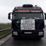 Sot, 150 kamionë nga Kosova po protestojnë në Morinë, duke vendosur pankarta në kamionët e tyre.
