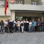 Me pankarta në duar, studentët e Drejtësisë u mblodhën në oborrin e Fakultetit, ndërsa kërkojnë lirimin e protestuesve.