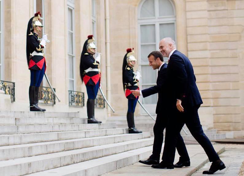 Në fotografinë e postuar në Facebook, Rama dhe Macron duken teksa hyjnë në pallatin Elysse.