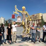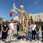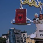 Në Sheshin “Skënderbej” shfaqet statuja e Drejtësisë me portretin e Edi Ramës, që simbolizon kapjen politike të drejtësisë për t’i shërbyer krimit dhe korrupsionit.