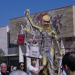 Statujën e Drejtësisë 3 metra të lartë e mbajnë 10 të rinj të maskuar si Edi Rama, Fatmir Xhafaj, Saimir Tahiri, Agron Xhafaj, Moisiu Habilaj për të treguar se Drejtësia është vënë në shërbim të trafikut të drogës, krimit të organizuar dhe qeverisë së lidhur me të.