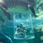 Por një djalë i çoi gjërat në një nivel tjetër duke i propozuar të dashurën e tij në një rezervuar të rrethuar nga dy krokodilat gjigantë.