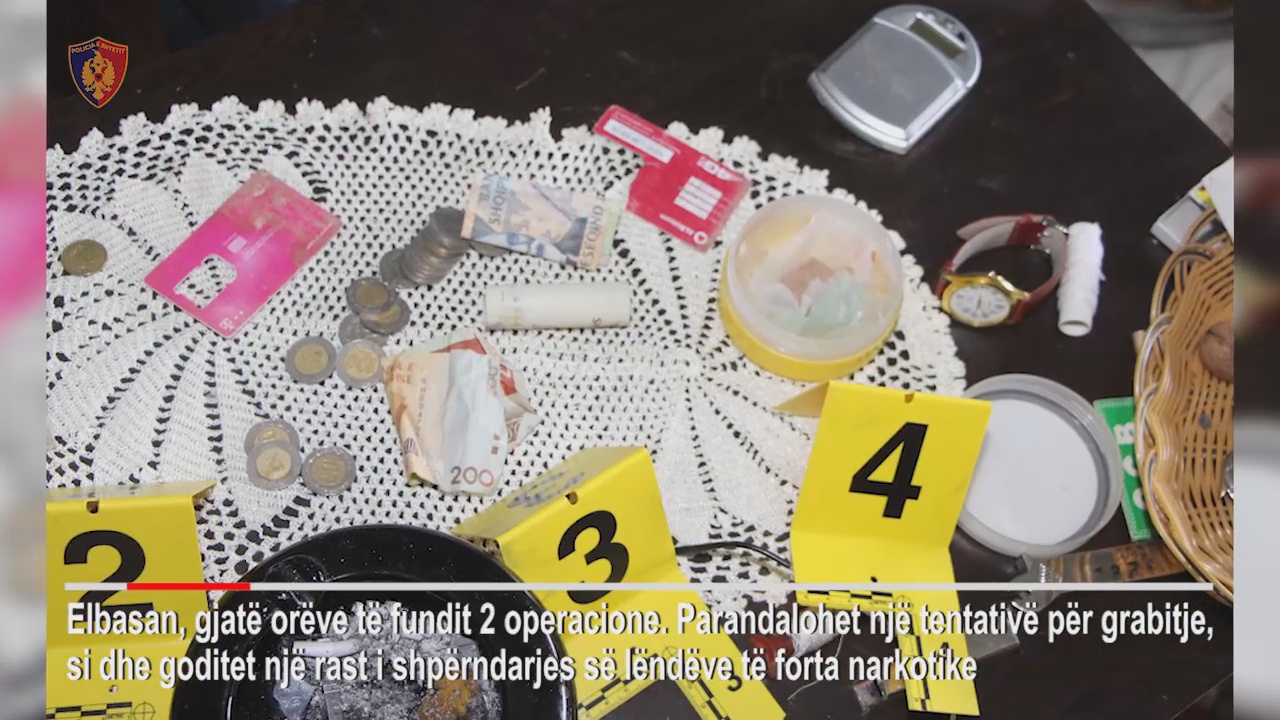 Nga ana e Specialistëve të Seksionit për Hetimin e Narkotikëve dhe Trafiqeve, pranë Drejtorisë Vendore të Policisë Elbasan, u realizua dhe u dokumentua me prova ligjore operacioni policor për veprat penale, “Prodhimi dhe shitja e narkotikëve”, e parashikuar nga neni 283 i Kodit Penal dhe “Moskallëzimi i krimit”, parashikuar nga neni 300 i Kodit Penal, ku janë arrestuar në flagrancë shtetasit: