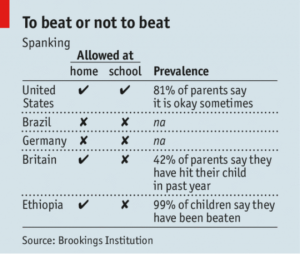 Gjithsesi, 81% e prindërve amerikanë besojnë se ndonjëherë është e nevojshme (shih tabelën). Kjo është më shumë sesa në shumë vende të tjera të pasura, 20 prej të cilave e kanë ndaluar.