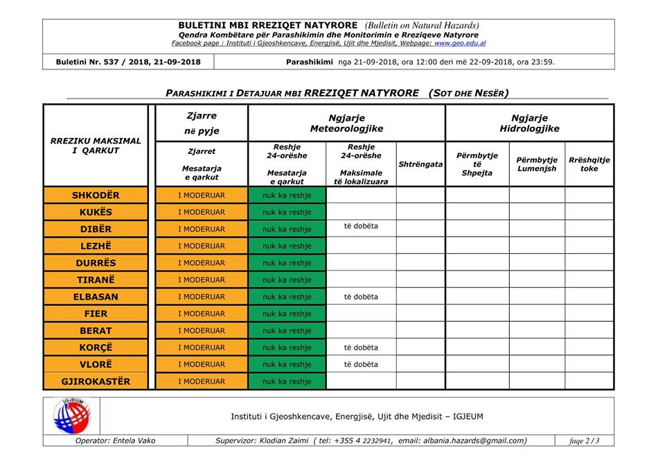 Në disa zona të qarqeve nuk përjashtohet mundësia që të ketë ndonjë reshje në formë shtrëngate me kohëzgjatje të shkurtër, më e mundshme në terrenet malore në Lindje.