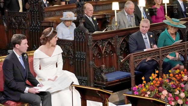 Princesha Eugenie, mbesa e Mbretëreshë Elisabeth II, është martuar me Jack Brooksbank në Windsor Castle. E nënti në përputhje me fronin u pa nga gjyshja e saj, Mbretëresha dhe Princi Philip, së bashku me anëtarët e tjerë të familjes së saj.