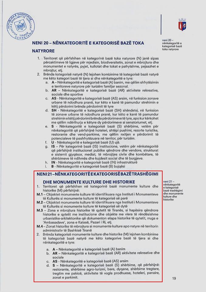 3. Faqe 19 e rregullores se Planit te Pergjithshem Vendore te Bashkise Tirane ku percaktohet miksimi i ndertimit ne zonat e trashegimise kulturore .