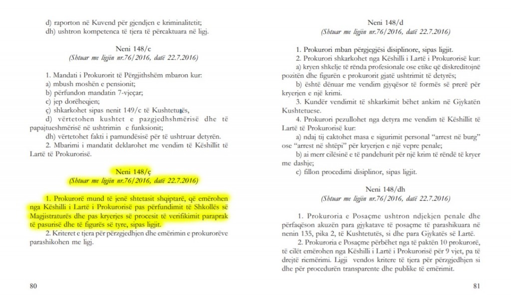1. Kushtetuta e detyron KLP të emërojë një prokuror vetëm pas përfundimit të Shkollës së Magjistraturës. Burri i deputetes së Edi Ramës nuk e ka përfunduar këtë shkollë.