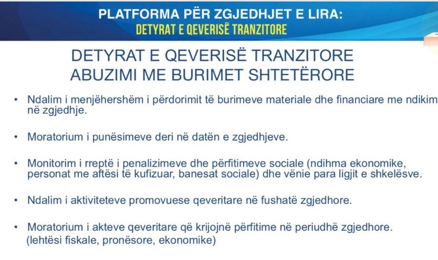 • Moratorium i punësimeve deri në datën e zgjedhjeve.