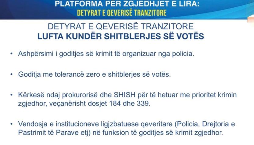 DETYRAT E QEVERISË TRANZITORE LUFTA KUNDËR SHITBLERJES SË VOTËS