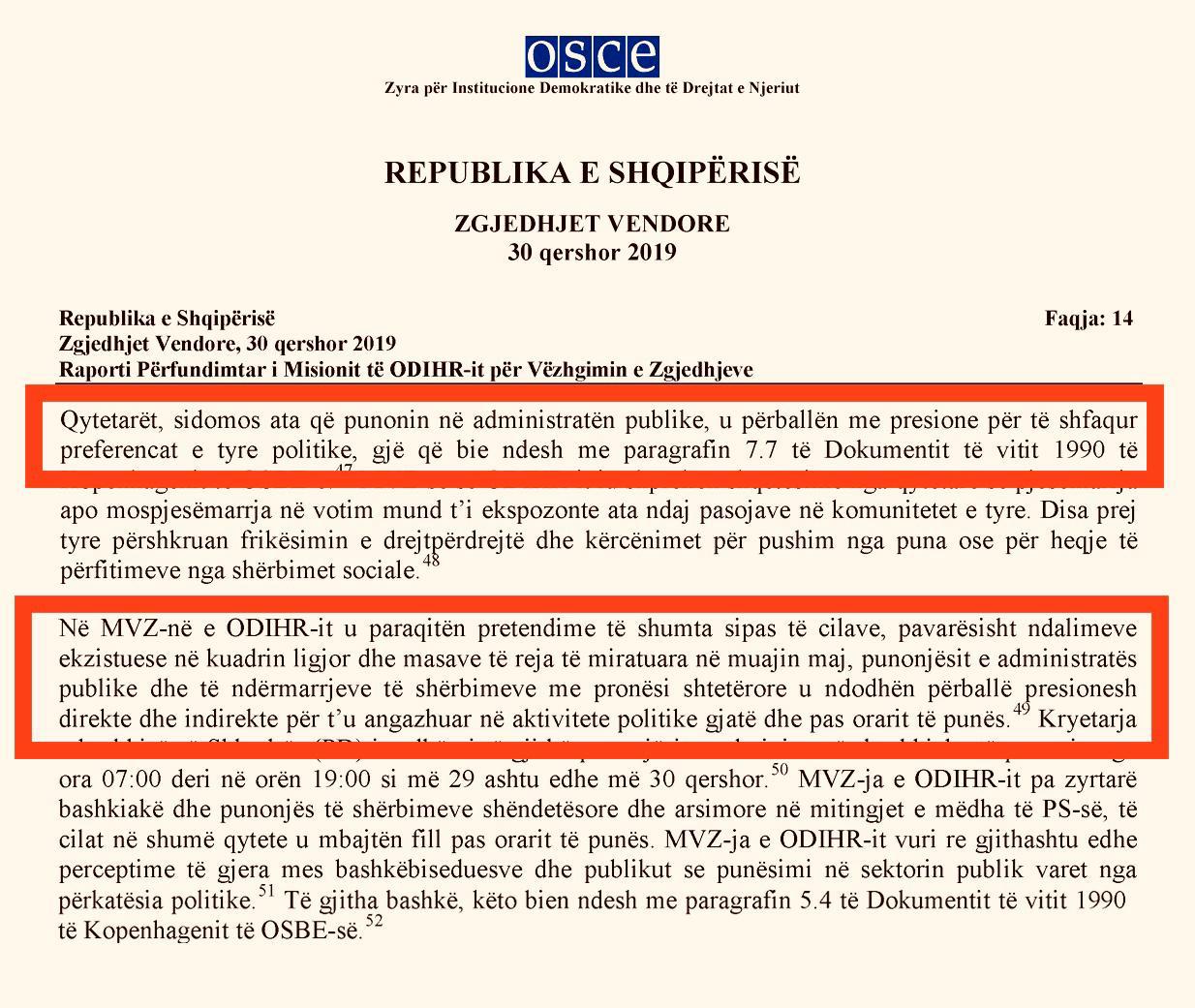 Administrata publike është e pabesueshme për të administruar një proces zgjedhor me standarde europiane. Raporti i ODIHR-it ka provuar se punonjësit e administratës janë nën presion politik, si dhe është bërë e qartë se ajo është e mbushur me militantë të Partisë Socialiste.