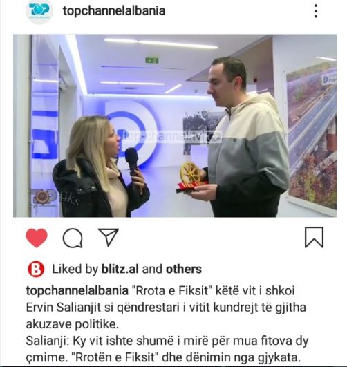 Ish-deputeti iPD-së, Ervin Salianji u shpall njeriu i vitit nga redaksia e emisionit investigativ “Fiks Fare” duke marrë simboliken e Ketij emisioni.