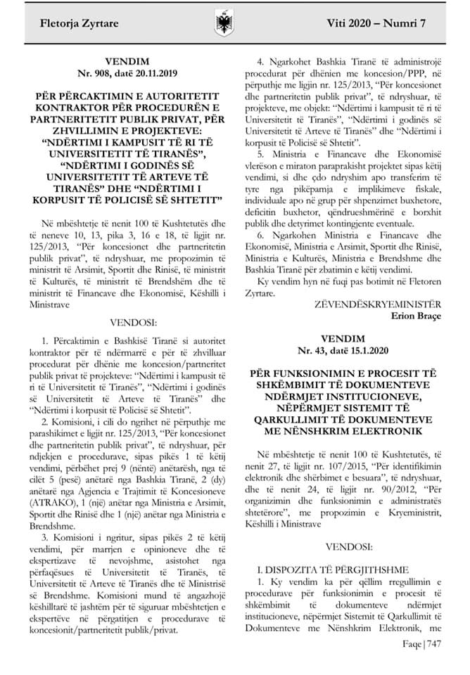 Dje, dokumenti i publikuar në Fletoren Zyrtare, konfirmoi se Kampusi Universitar do të jepet me PPP dhe, si kudo, pas kësaj afere qëndron Erjon Veliaj.