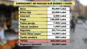 Lexojeni përgjigjen më poshtë te tabela e kostove që ka një biznes i vogël: Vetëm për të paguar qiranë, dritat, ujë, paga, sigurime, taksat vendore dhe ato qendrore i duhen 256 mijë lekë në muaj. Pra, qeveria do t’i kompensojë të vetëpunësuarit me një vlerë të papërfillshme në raport me shpenzimet.