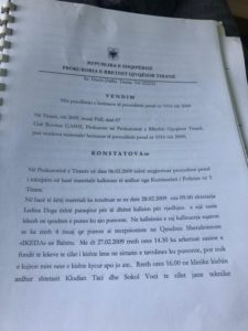 “Kam dhënë sqarime të plota pranë komisariatit të Policisë që ditën e ngjarjes dhe se që nga ai moment nuk kam patur asnjë kontakt të mëpasshëm nga ana e Oficerëve të policisë Gjyqësore apo nga Prokuroria pranë Gjykatës së Rrethit Gjyqësor Tiranë.