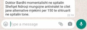 “Dmth jo vetem qe genjejne paturpesisht per numrin e te shtruarve me Covid, por nuk kane siguruar as sasine e duhur te ilaceve, pjese e protokollit te trajtimit te virusit corona! Sic duket nga denoncimi mungon nje bar bazik si antiviralet! Dhe kjo mungese kur ka 150 te shtruar! Po kur te behen me shume? Pse ministria genjeu sot kur tha se jane 124 te shtruar ne 2 spitalet Covid, kur sic shihet nga denoncimi vetem tek “Shefqet Ndroqi’ jane te pakten 150 te shtruar? A te vjen ndopak zor Ogerta qe genjen me shifrat kur minimumi personeli e di sa persona jane te shtruar? Kaq e paafte je per te parashikuar situaten apo po negocion tendera?“-shkruan ish-deputeti.