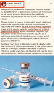 Tre javë më parë, Basha kërkoi vaksinimin falas. “Qeveria duhet të marrë urgjentisht masat dhe të sigurojë vaksinën e gripit falas për të gjithë popullsinë në vjeshtë. Kjo do të mbronte shqiptarët nga influenca e stinës dhe komplikacionet e saj, dhe do të ndihmonte sistemin tonë shëndetësor për ta patur atë të gjithin në dispozicion dhe të përgatitur për ta përballuar pandeminë COVID-19.”- thekson lideri i opozitës që në 26 korrik.