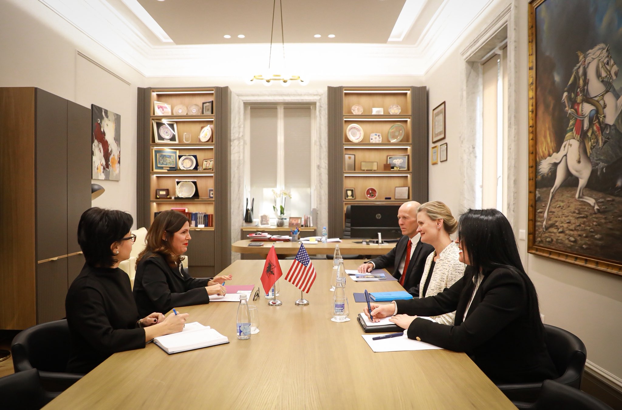 “Sot, e Ngarkuara me Punë Nancy Van Horn përgëzoi Kryetaren e sapoemëruar të Gjykatës Kushtetuese Fiona Papajorgji dhe diskutoi se si mbështetja afatgjatë e Shteteve të Bashkuara për institucionet e zbatimit të ligjit në Shqipëri çon përpara prioritetet e Presidentit Trump: çmontimin e rrjeteve të narkotrafikut dhe krijimin e kushteve të barabarta për bizneset amerikane.
