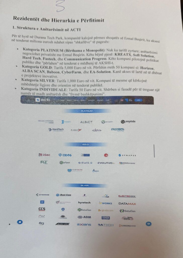 Për të hyrë në Durana Tech Park, kompanitë kalojnë përmes shoqatës së Ermal Beqirit, ku aksesi në tenderat miliona eurosh ndahet sipas shkallës së pagesës.