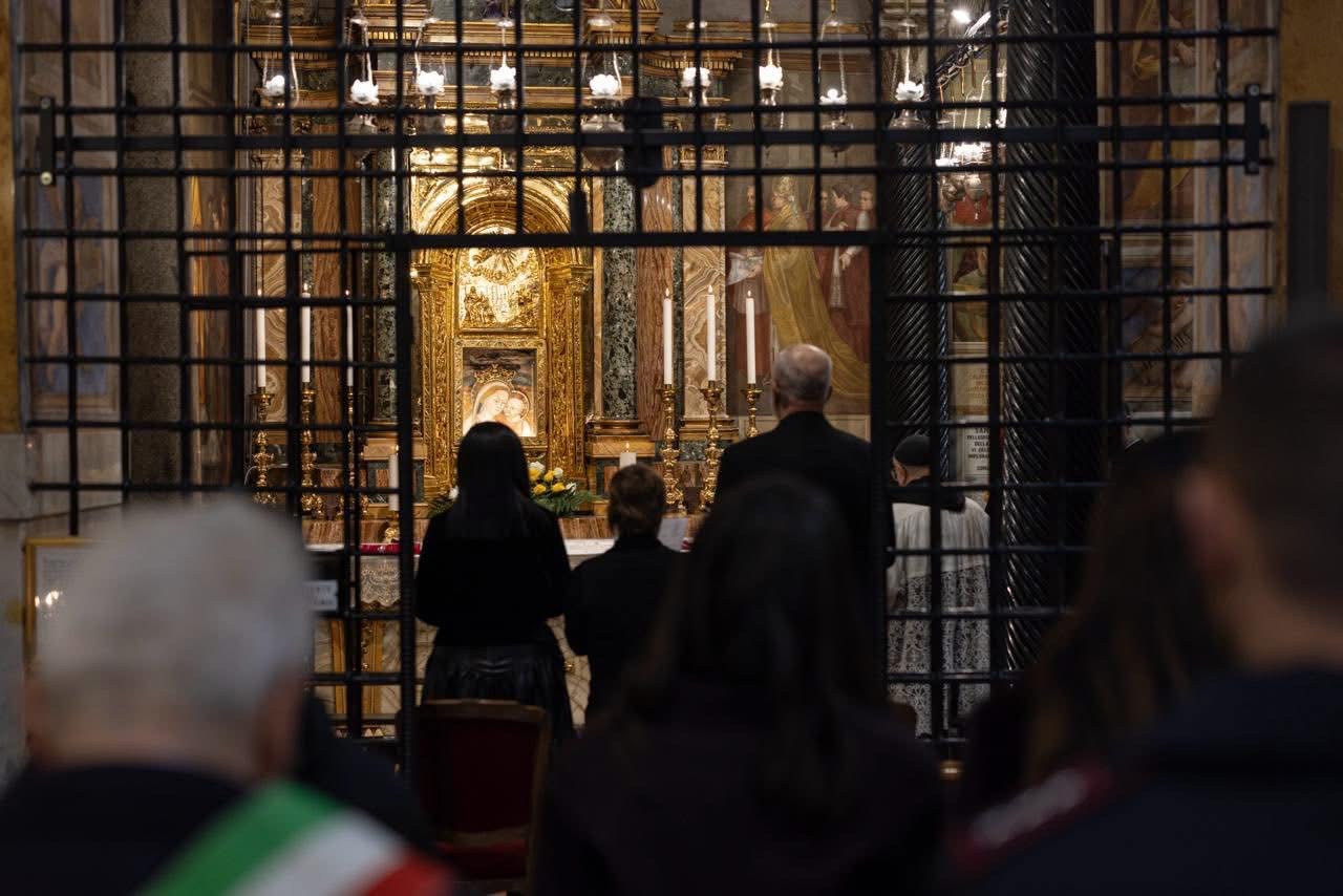 “Vizita në Vatikan për takimin me Atin e Shenjtë, nisi sot nga Genazzano, në bazilikën e famshme, ku gjendet shembëlltyra e Zojës së Këshillit të Mirë, mbi një copë të shkëputur nga muri i Kishës së Shkodrës në vitin e largët 1467.