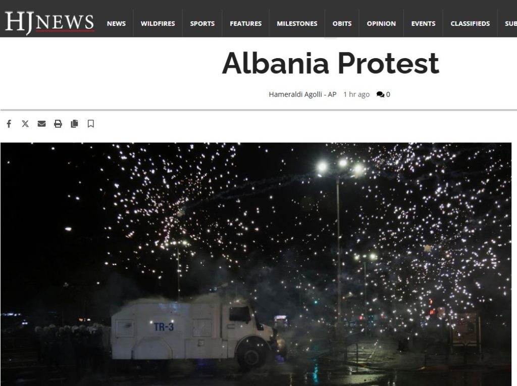 Mediat botërore i kanë bërë jehonë protestës së opozitës në Tiranë. Qytetarët kërkojnë dorëheqjen e qeverisë për shkak të akuzave për korrupsion. Policia i sulmon me gazlotësjellës dhe ujë.