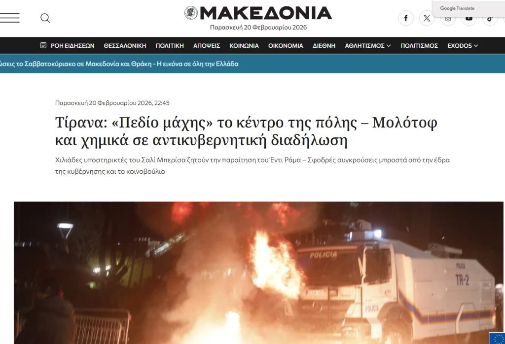 Naftemporiki.gr- Shqipëri: Akuzat për korrupsion ndezin përplasje mes policisë dhe protestuesve.