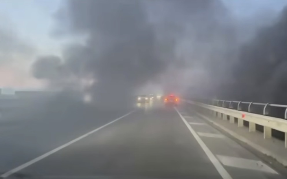 Zona është përfshirë nga shtellunga të dendura tymi të zi, të shkaktuara nga djegia e gomave të përdorura që hidhen pranë brigjeve të lumit dhe më pas u vihet flaka. Tymrat kanë mbuluar rrugën dhe kanë vështirësuar ndjeshëm qarkullimin e automjeteve, duke rrezikuar edhe sigurinë e drejtuesve të mjeteve që kalojnë në këtë aks.