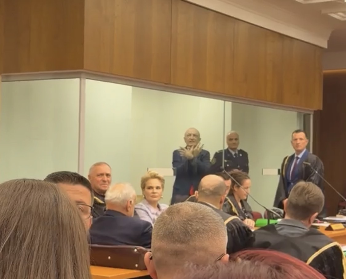 Ish-Presidenti Ilir Meta ka mbërritur në sallën e gjyqit, ku është shfaqur në kafazin e xhamit, ndërsa ka përshëndetur të pranishmit me dy gishtat lart.