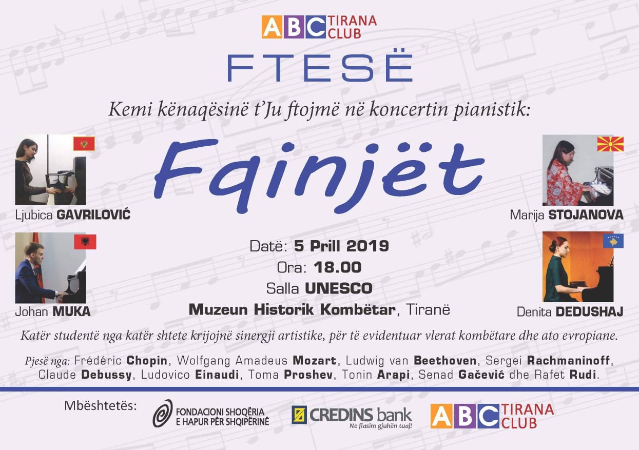 Qendra studentore ABC Tirana Club është organizatore e koncertit pianistic “Fqinjët”, ku interpretojnë 4 studentë artistë nga 4 shtete.