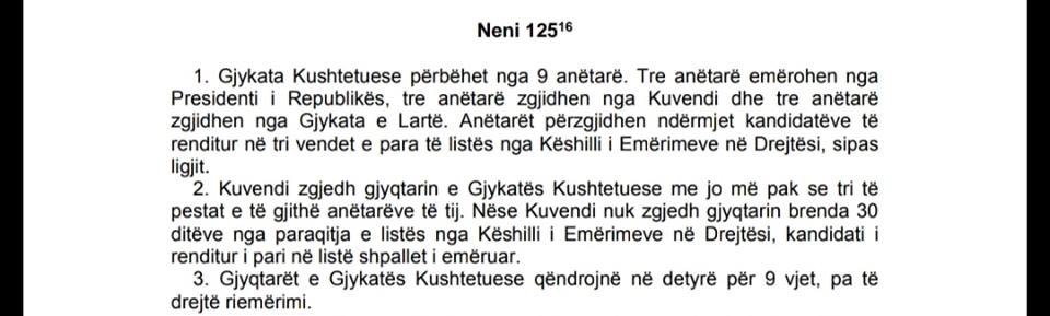 Ky është neni 125 i Kushtetutës i miratuar me konsensus në 22 korrik 2016.