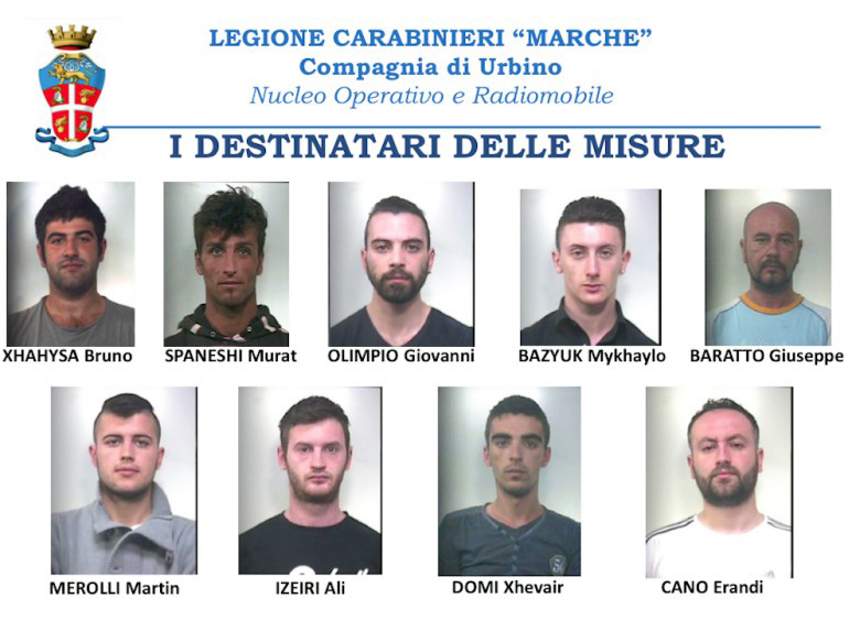 Operacioni i koduar “Mozzicone” ka ekzekutuar 9 urdhrat e arrestit, nga të cilat 7 persona janë në burg dhe 2 nën arrest shtëpie, në operacionin e zhvilluar në provincat Pesaro dhe Urbino, e shtrirë nëpër qytetet e Savonas, Tortoretos, Tarantosit dhe Fasanos.