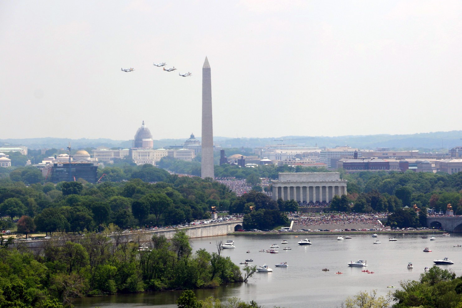 Pak pas mesditës, 56 avionë historikë të restauruar fluturuan për 45 minuta mbi lumin Potomac, nga Memoriali i Lincolnit te National Mall si edhe nga ndërtesa e Kongresit deri pak metra larg Shtëpisë së Bardhë, në zemër të kryeqytetit federal.