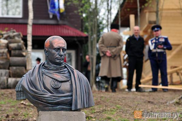Një grup kozakësh në Shën Petersburg kanë përuruar një bust të presidentit rus, Vladimir Putin, në të cilin ai portretizohet si një perandor i Romës, duke shprehur kështu adhurimin ndaj liderit që po drejton vendin prej mbi 15 vitesh.