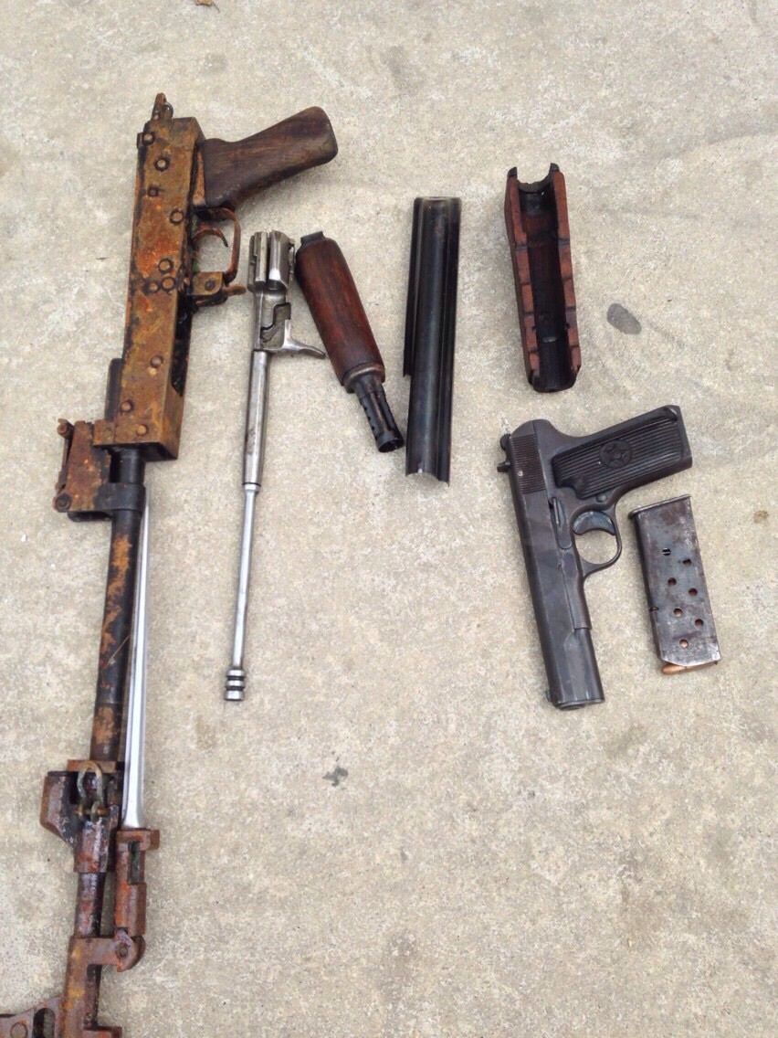Në cilësinë e provës materiale iu gjetën dhe sekuestruan një arsenal armësh: