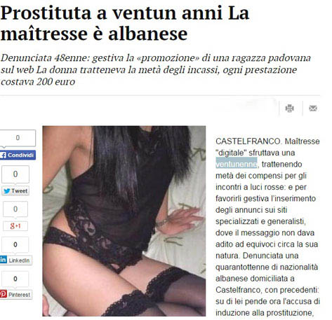 Mediat italiane, bëjnë të ditur se shqiptari ka rënë në pranga pasi akuzohet për shfrytëzim prostitucioni. Sipas medieve italiane, shqiptari 48-vjeçar shfrytëzonte 21-vjeçaren italiane, duke e mbajtur në banesën e tij, për të prostituuar, dhe në këmbim merrte gjysmat e fitimeve.