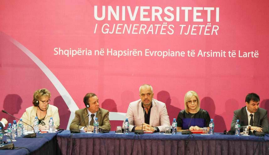 Në tryezën e diskutimit ishte i pranishëm Kryeministri Rama, Ministrja e Arsimit Lindita Nikolla dhe Drejtori i Përgjithshëm për Arsimin dhe Kulturën në Komisionin Evropian, Xavier Prats Monne.