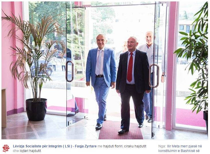 Njëra prej disa fotove të shpërndara sot në “Facebook” nga LSI, tregon Ilir Metën, kryetarin e Kuvendit, Nesim Spahiu, kryetarin e bashkisë së Skraparit si dhe ministrin e Drejtësisë, Nasip Naço. Të tre këta, janë fotografuar ndërsa hynë në bashkinë e Skraparit, në ceremoninë e konstituimit të kryebashkiakut, të porsakonfirmuar nga zgjedhjet e fundit vendore të 21 qershorit 2015.