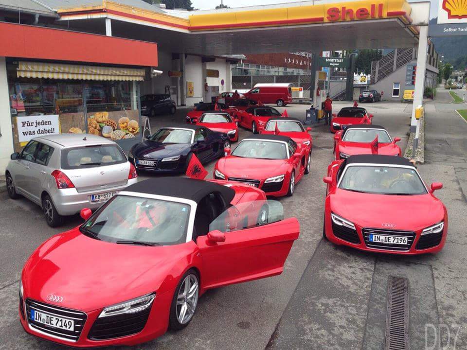 Portali “Shqipëria ime” ka postuar një foto, ku një numër makinash luksoze me ngjyrë të kuqe dhe flamurin shqiptar shëtisin në Gjermani.