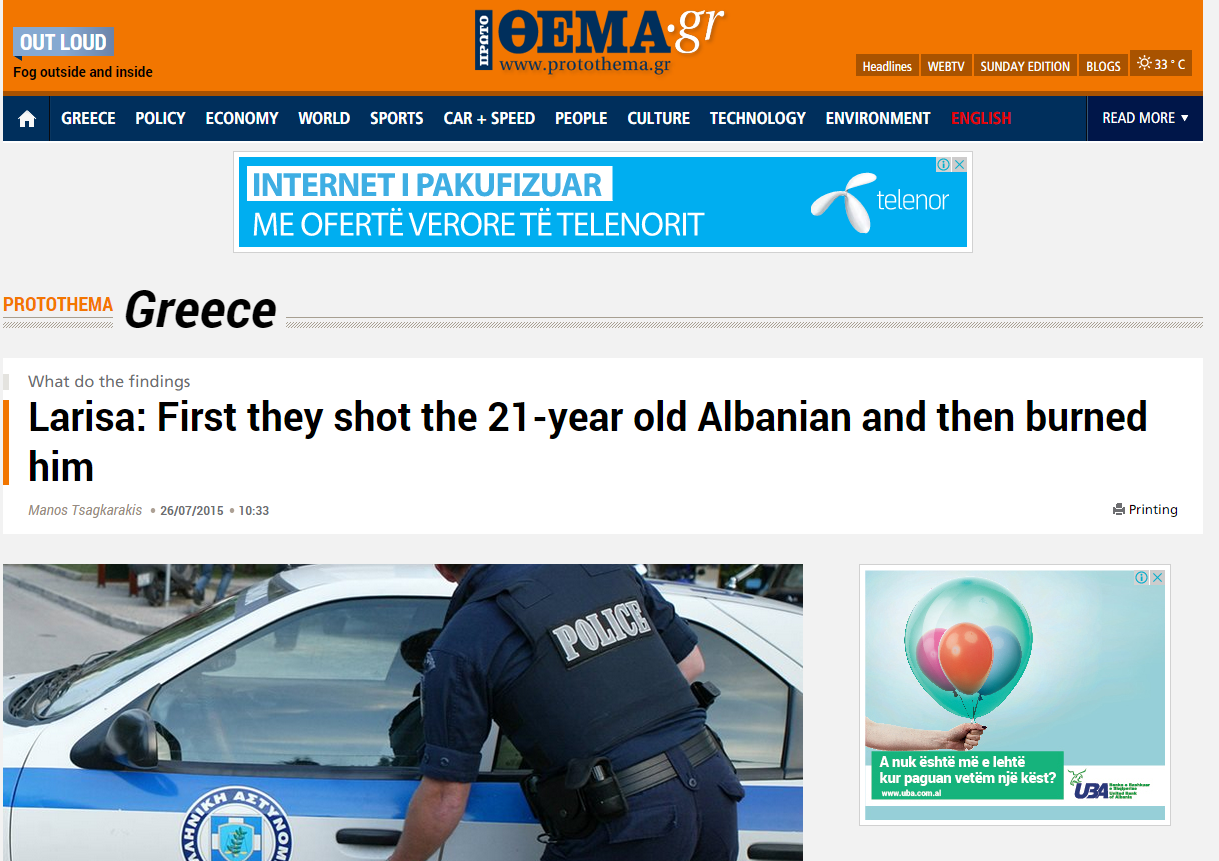 Mediat greke bëjnë të ditur se shqiptari është qëlluar me armë nga një distancë e afër dhe më pas autorët e dyshuar, kanë djegur për të fshehur gjurmët. Policia helene e gjeti trupin e të riut nga Shqipëria në një zonë të pabanuar në Larisa.