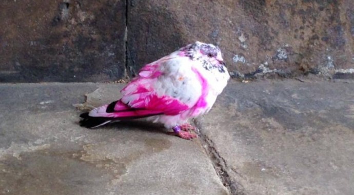 Një pëllumb me ngjyrë rozë është parë nga kalimtarët në Stockport, por arsyeja pse ai kishte atë ngjyrë mbetet ende mister.